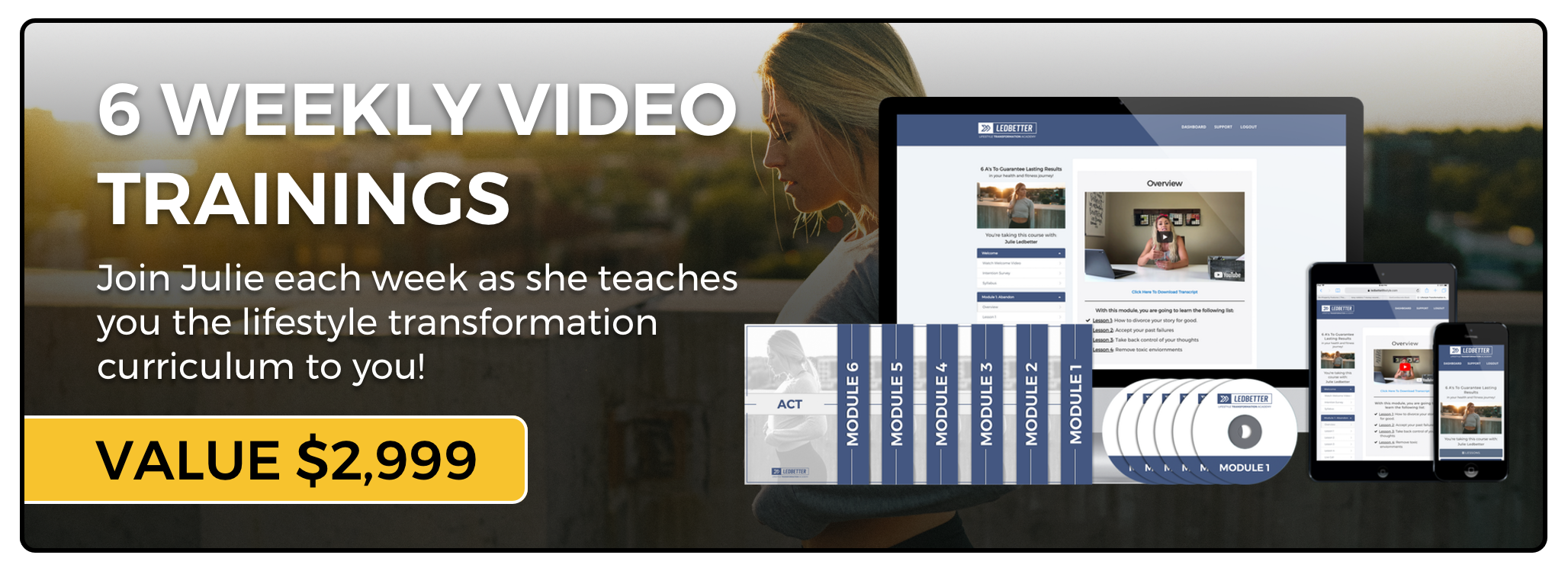Hi, I'm Julie Ledbetter, a former WBFF Bikini Pro athlete turned Lifestyle & Mindset Coach for women who are ready to step into their happiest, healthiest self and finally sustain their results!